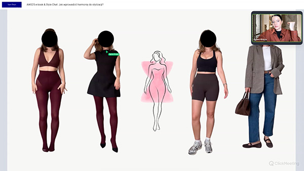 Czat rozpocznie się od webinaru na temat zasad stylizacji i doboru ubrań do sylwetki, który będziecie mogły odtworzyć w dogodnym dla siebie czasie i podczas którego: