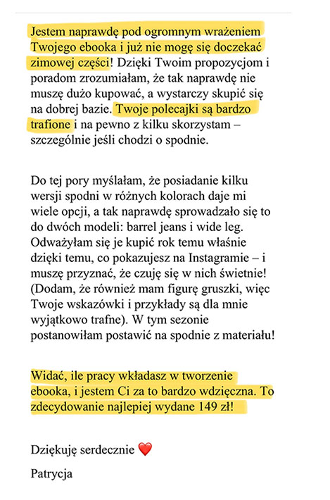 W rezultacie zaczniecie kupować mniej, ale lepiej. Wasze garderoby zaczną same układać się w styl. Poczujecie, że macie w końcu swój sposób ubierania się, a nie tylko tablicę na Pintereście.