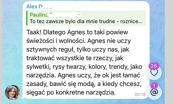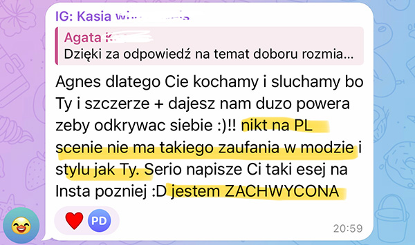 Dostęp do: PYTANIA DO AGNES, gdzie odpowiem na Wasze pytania dotyczące stylu, doboru ubrań, przeglądu szafy, zakupów czy najnowszych trendów.